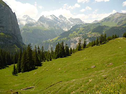 We left our bags at the hostel and took a train to Grindelwald where we transferred to a cog train to Kleine Scheidegg. From there, we hiked 8 miles in 5.5 hours down to Wengen. I say down, because that is the general direction, but there was plenty of "up" involved as we traveled across alpine meadows, along gorges, and eventually through dense woods. The last several miles were a pretty steep descent, which is almost as tiring to me as ascending.