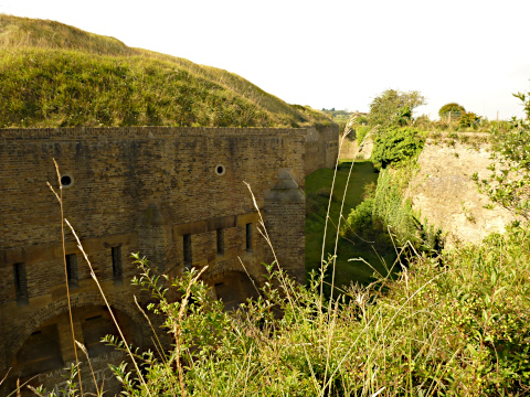 It was another nice day, so we left our packs with the landlord and hiked up to the Western Heights, a fortification on another hill opposite the castle. The beginnings of this series of forts date to the U.S. War of Independence, when France and Spain sensed British weakness and joined our side. Napoleon and other 19th-century threats caused further development, and it was used through WW2. We took a walking tour with a local historian, including passage through a unique triple spiral staircase that was designed to rapidly move troops from their hillside barracks to the shore. The weather was clear, so we were able to see France one last time before heading to London.