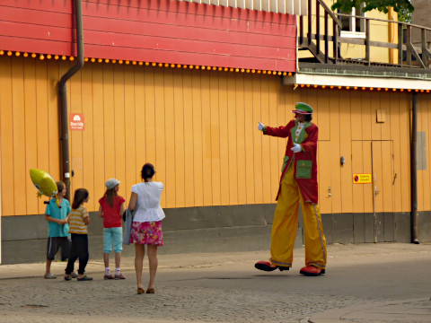 After breakfast, we rode into town, intending to ride the hop-a-bus. When we located the Tourist Bureau, we realized that we had both left our credit and ATM cards at the hotel. I had 9 Swedish Kroner and Janene had 40 Euros. We went to a money changer and got enough local money to buy food for the day, but not enough for bus tours or boat rides. Fortunately, we had our Metro passes, so we rode here and there on the city buses, stopping to explore likely looking areas. We viewed the Pippi Longstocking museum only from the outside (Thank God). We liked Stockholm a lot, but can't really say much specific about it. No magnificent buildings, understated palace, but just a really nice city with nice people.